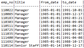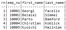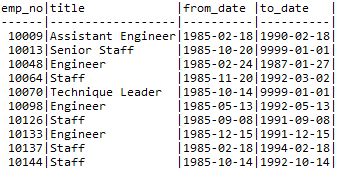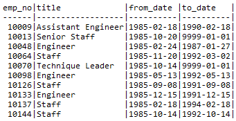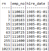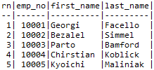 -> SELECT CONCAT(' > v_emp_no :', v_emp_no) AS debug_message;