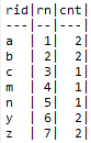 SELECT rid, @rank:=@rank+1 as rn, cnt