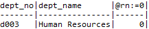 -> SELECT CONCAT(' > v_dept_no :', v_dept_no) AS debug_message;