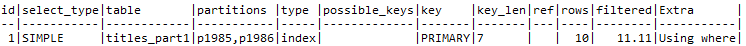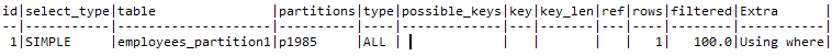 -> SELECT emp_no FROM dept_emp WHERE dept_no=v_dept_no LIMIT 1;