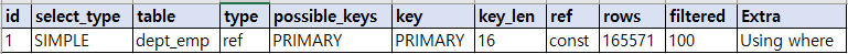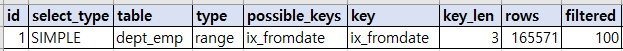 explain select * from titles where ISNULL(to_date); -- index range scan