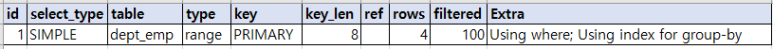 GROUP BY와 ORDER BY가 같이 사용된 쿼리에서는 둘 중 하나라도 인덱스를 이용할 수 없을 때는 둘다 인덱스를 사용하지 못한다.