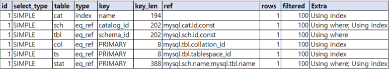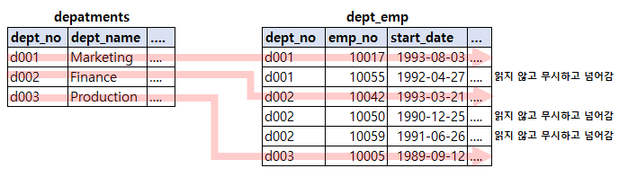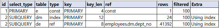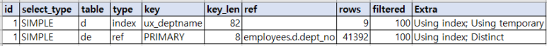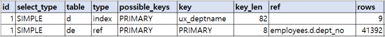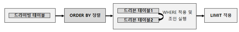 ORDER BY가 사용된 쿼리에서 예외적인 순서로 실행되는 경우를 보여준다. 첫 번째 테이블만 읽어서 정렬을 수행한 뒤에 나머지 테이블을 읽는데 주로 GROUP BY 절이 없는 ORDER BY 만 사용된 쿼리에서 사용될 수 있는 순서이다.