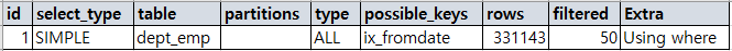 explain select * from titles where ISNULL(to_date) = 1; -- index full scan