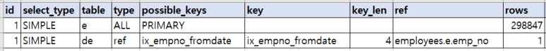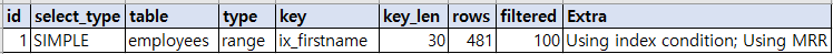order by emp_no desc, first_name; -- ix_test 인덱스 사용