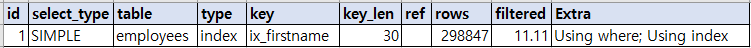 order by emp_no , first_name desc; -- ix_test 인덱스 사용