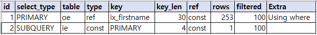 order by emp_no, first_name; -- ix_test 인덱스 사용못함