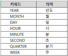 - DATETIME 타입 'YYYY-MM-DD HH:MM:SS' 형식으로 문자형으로 변환되어 저장 8bytes