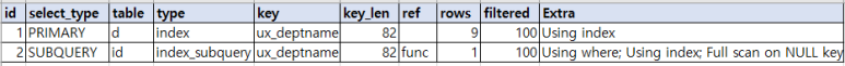 GROUP BY절에 명시된 컬럼과 ORDER BY에 명시된 컬럼이 순서와 내용이 모두 같아야 인덱스를 사용한다.