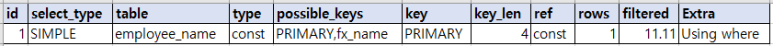 -- 컬럼이 숫자 타입 -> 문자열 상수값을 숫자타입 형변환 : 인덱스 사용