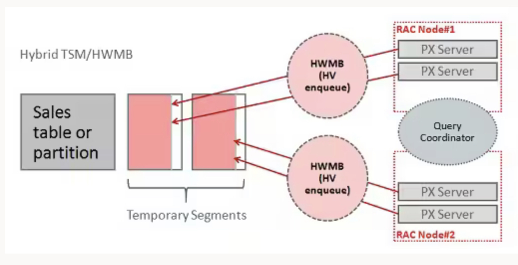Parallel Query를 수행하는 과정에서의 direct path read 대기는 필연적인 것으로 이 대기 자체를 튜닝하는 것은 불가능하다. 오히려 SQL 튜닝을 통해 Parallel Query 자체의 성능을 개선하는 것이 방법이다. 시스템의 용량에 비해 불필요하게 Parallel Query를 수행하는 것은 오히려 성능을 저하시키는 요인이 된다. 데이터 파일에 대해 직접 읽기 작업을 수행하기 전에는 읽기의 대상이 되는 객체의 더티 블록이 데이터 파일에 기록이 선행 되어야 한다.. 즉 체크포인트가 발생하게 된다. 이 작업을 수행하는 동안 코디네이터 세션은 enq: TC - connection 대기 이벤트를 발생시킨다.